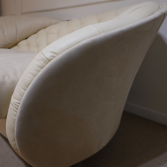 優雅に弧を描くフォルムが印象的な、ラグジュアリーソファ「Zeno」2人掛け。