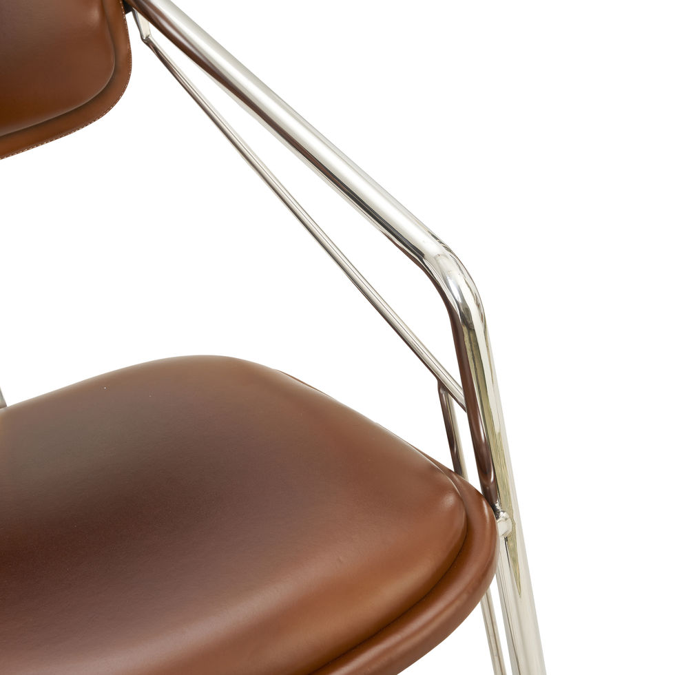 シンプルで洗練されたデザインのSTINGチェアです。素材はステンレス、座面と背もたれにはラバーウッド、牛革を使用しています。